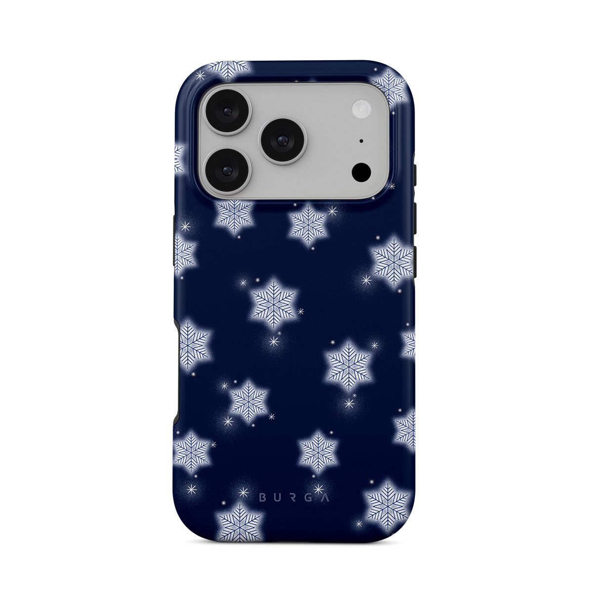 Este design contém: flocos de neve brancos, fundo azul marinho, padrão de flocos de neve de inverno, flocos de neve geométricos, design de inverno clássico