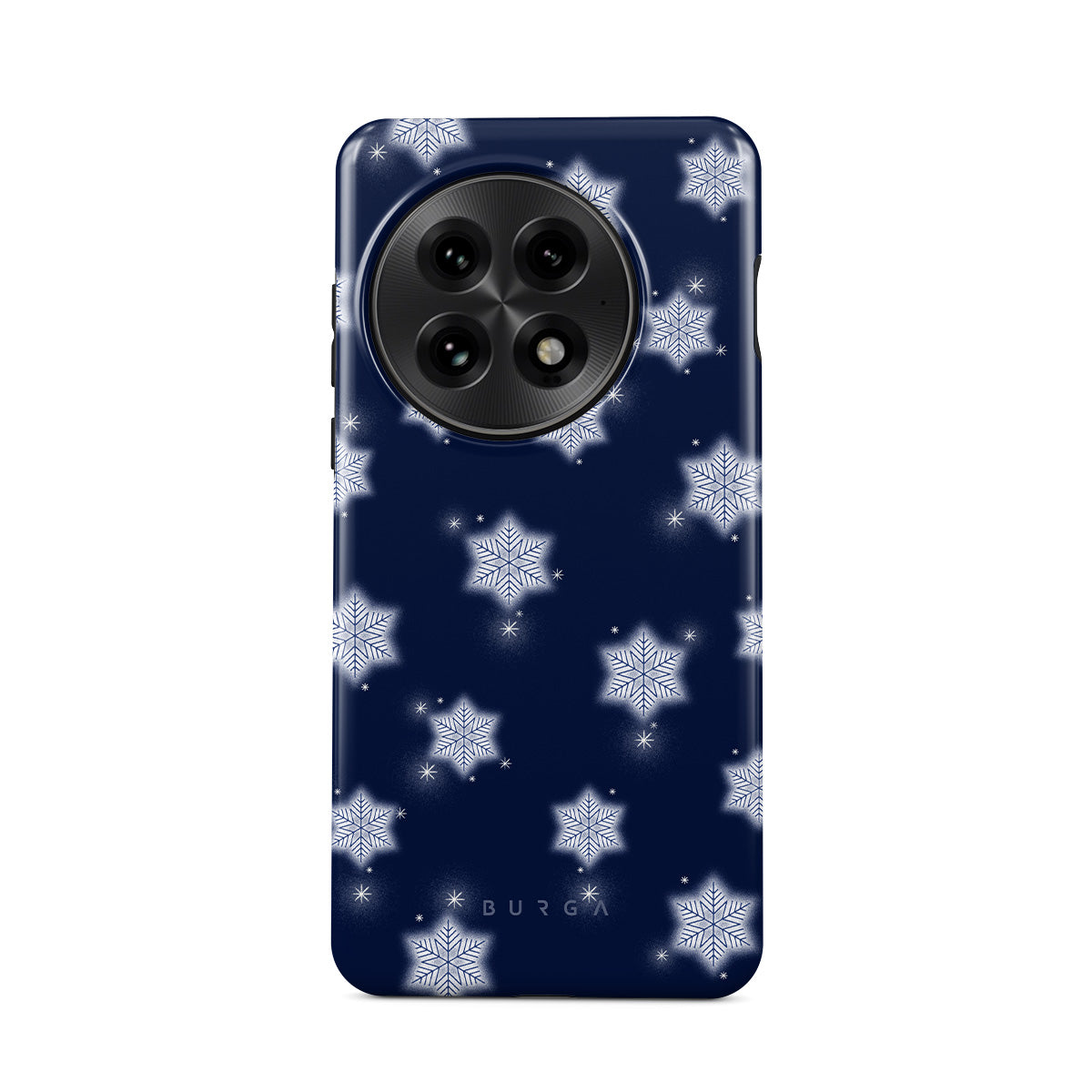 Este design contém: flocos de neve brancos, fundo azul marinho, padrão de flocos de neve de inverno, flocos de neve geométricos, design de inverno clássico