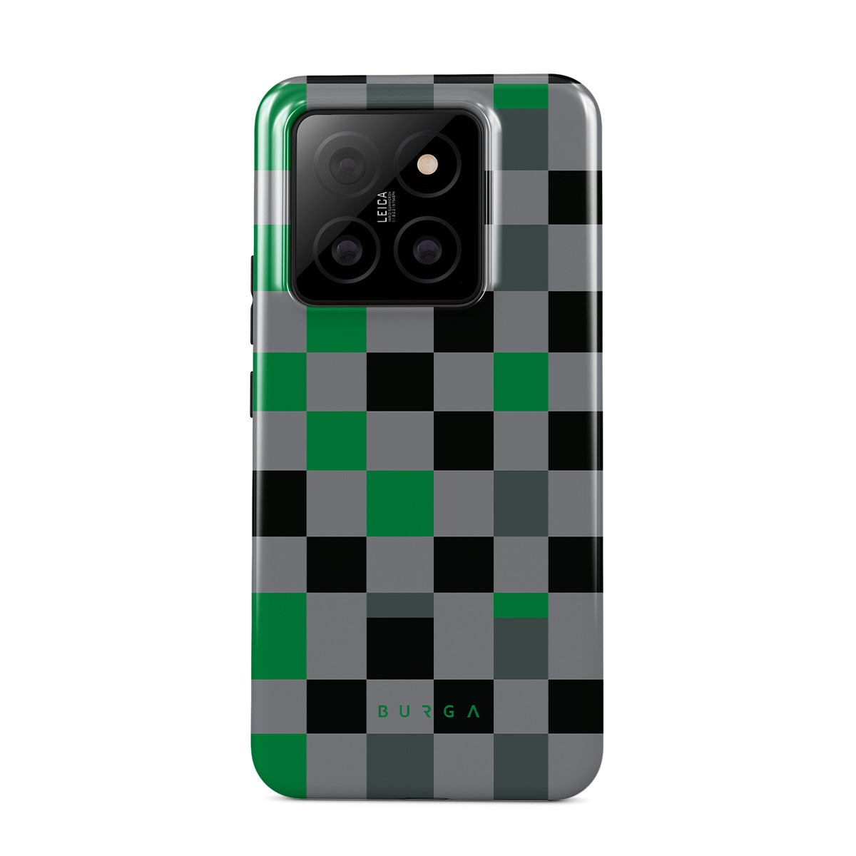 Este design contém: padrão xadrez, verde, cinzento e preto, geométrico