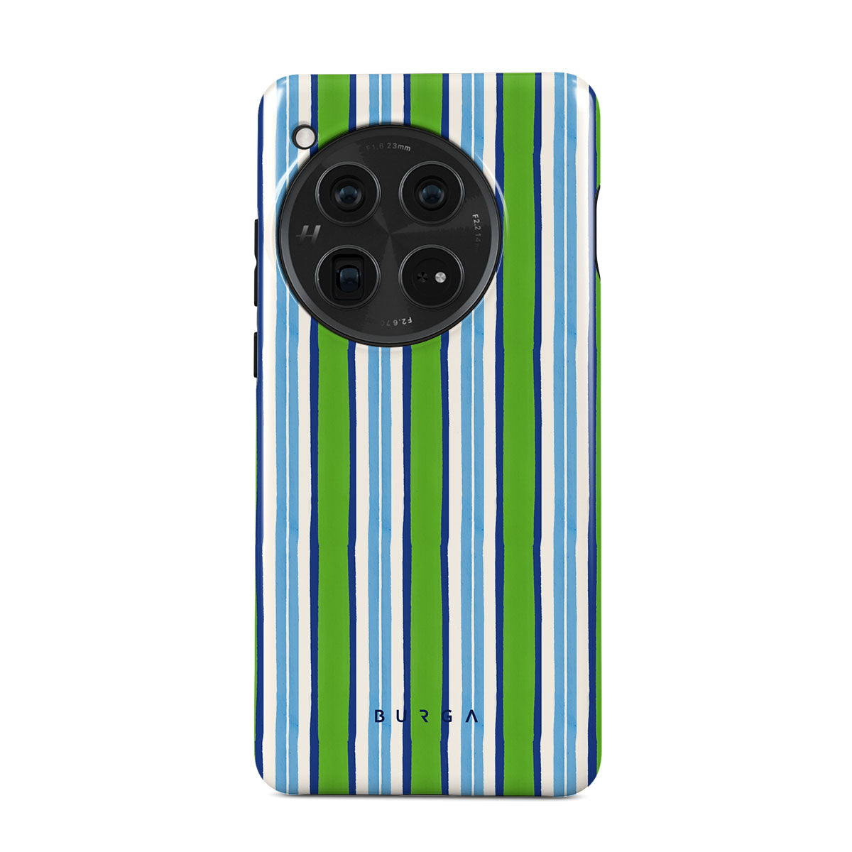 Este design contém: listras verticais verdes, azuis e brancas