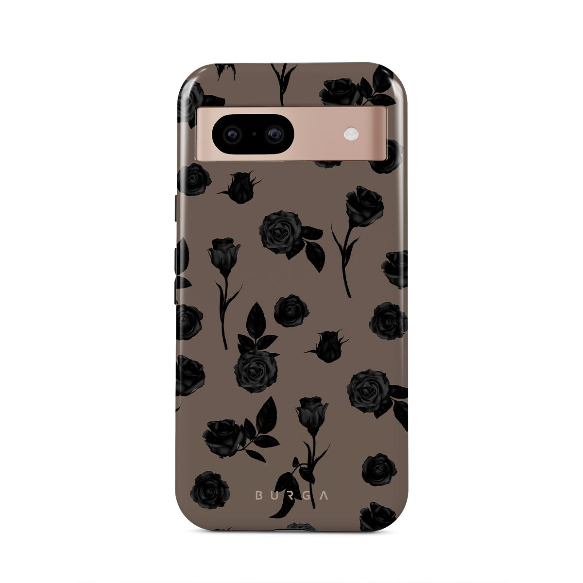 Este design contém: rosas pretas, tons terra, pormenores florais, flores escuras.