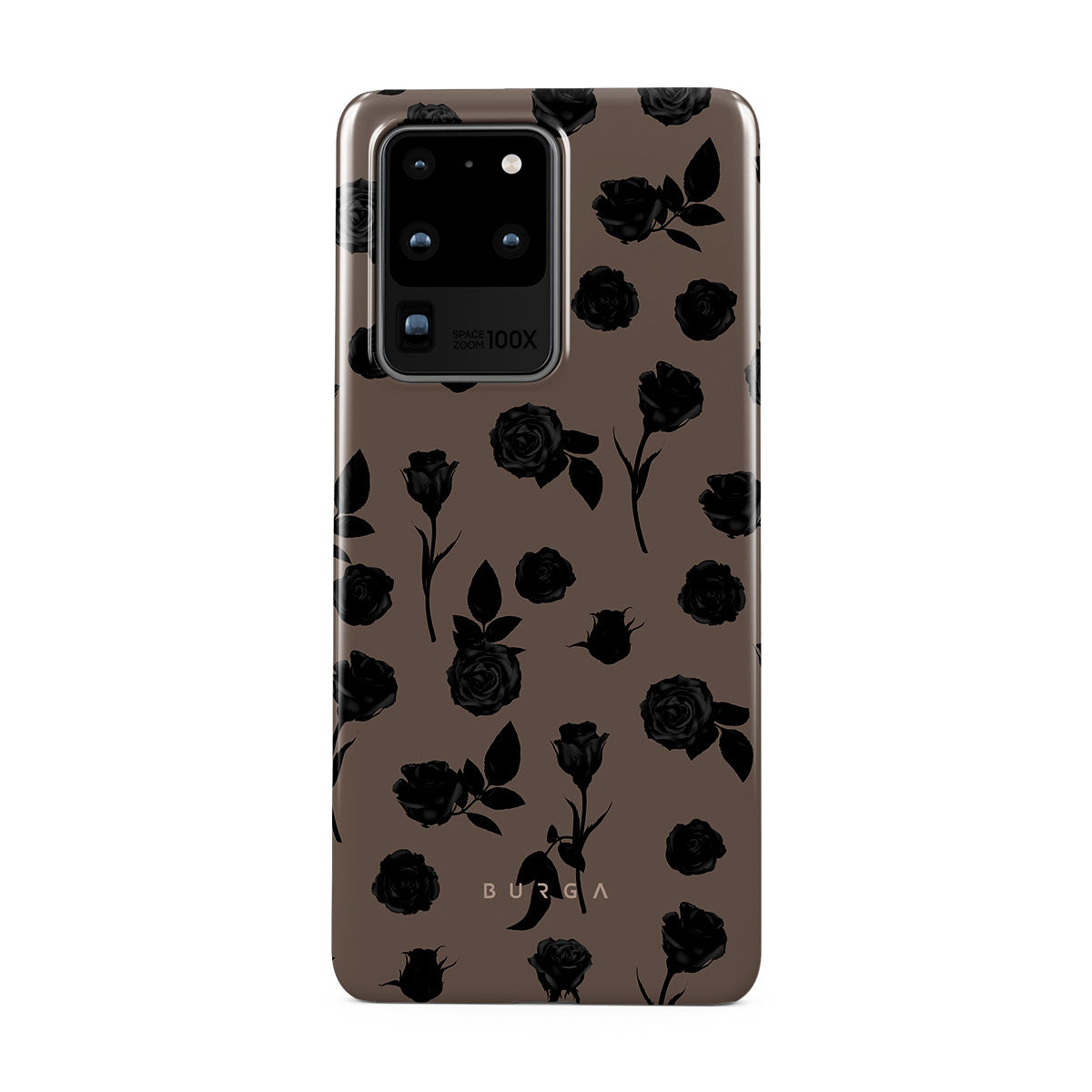 Este design contém: rosas pretas, tons terra, pormenores florais, flores escuras.