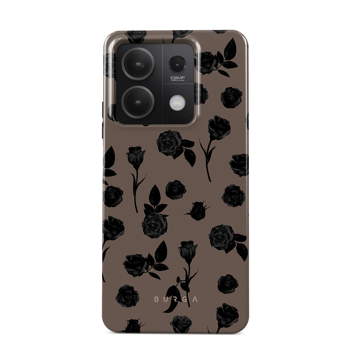 Este design contém: rosas pretas, tons terra, pormenores florais, flores escuras.