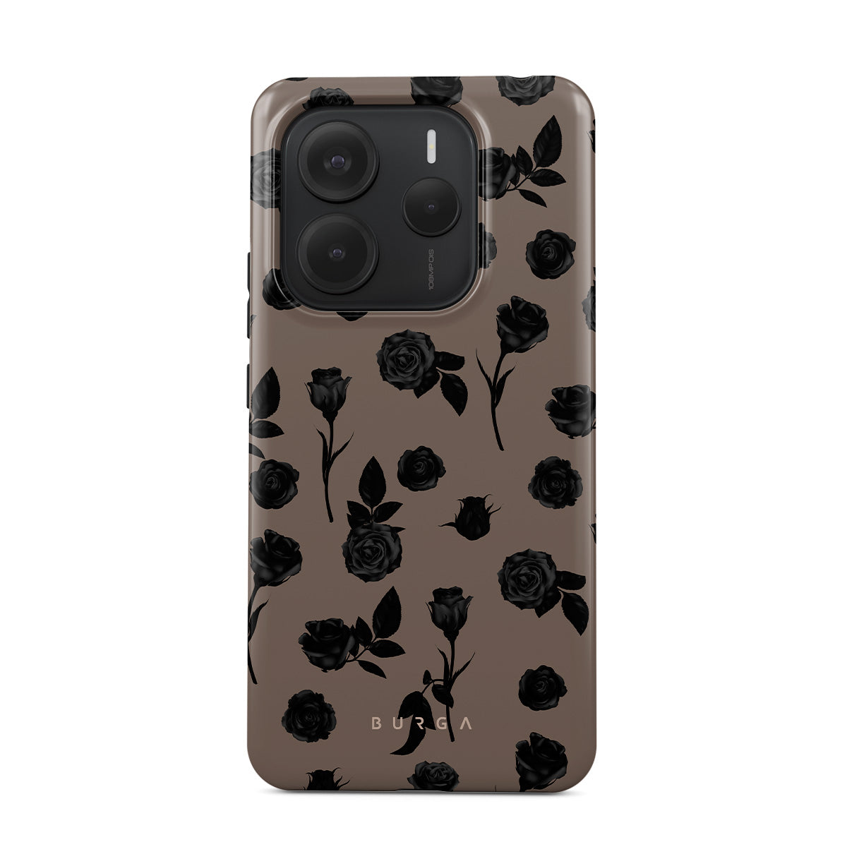 Este design contém: rosas pretas, tons terra, pormenores florais, flores escuras.