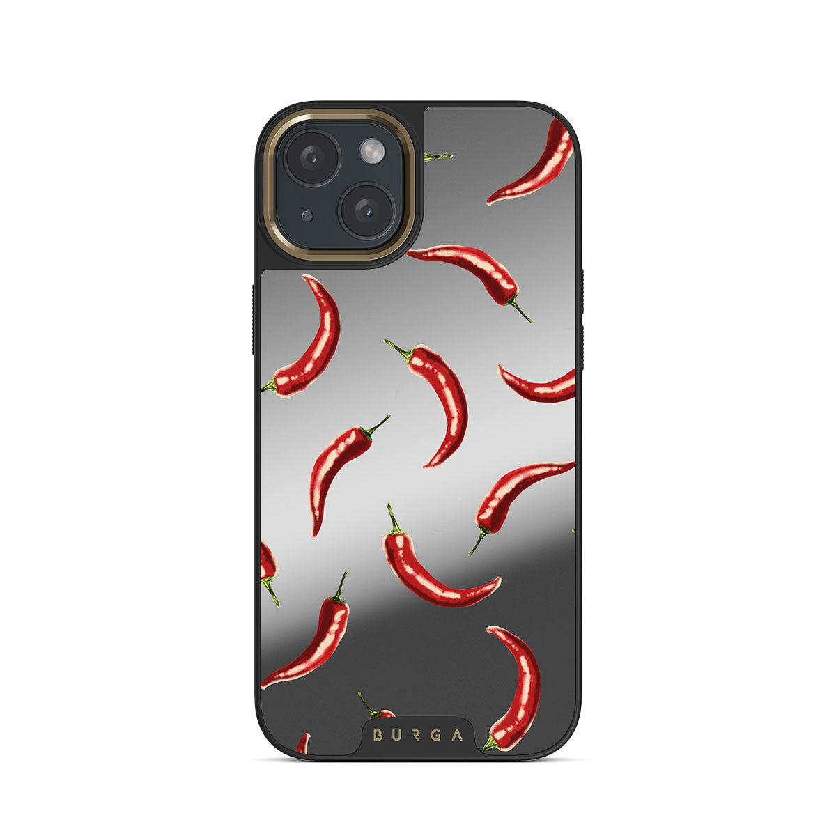 Este design contém: malaguetas, comida picante, pimentos vermelhos, espelho