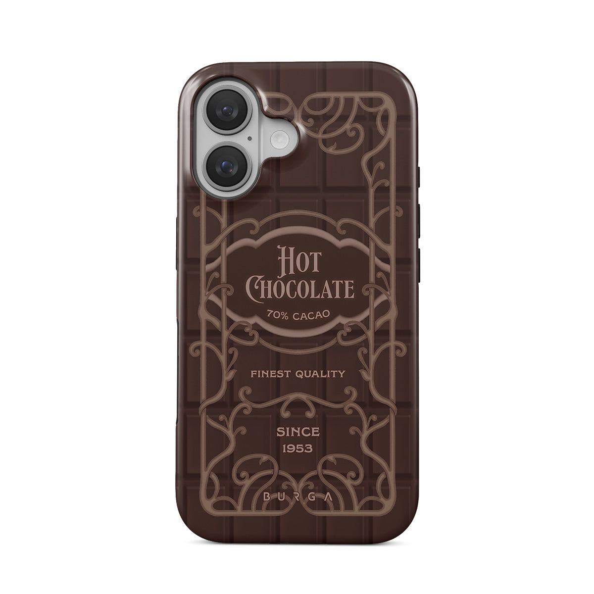 Este design contém: etiqueta de chocolate quente, design de chocolate marrom, estilo retro de embalagem