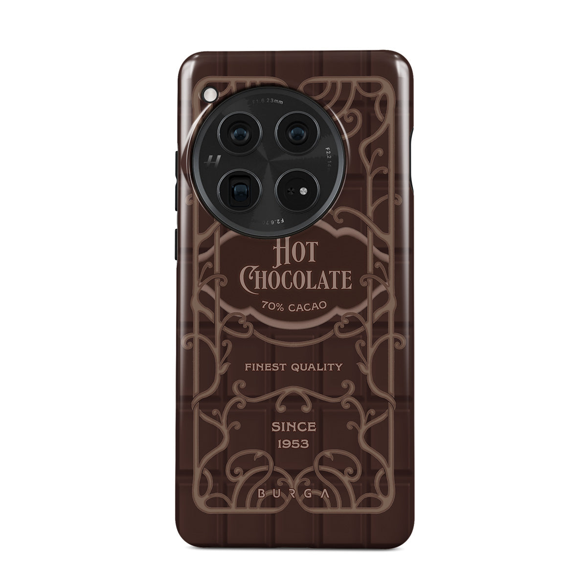 Este design contém: etiqueta de chocolate quente, design de chocolate marrom, estilo retro de embalagem