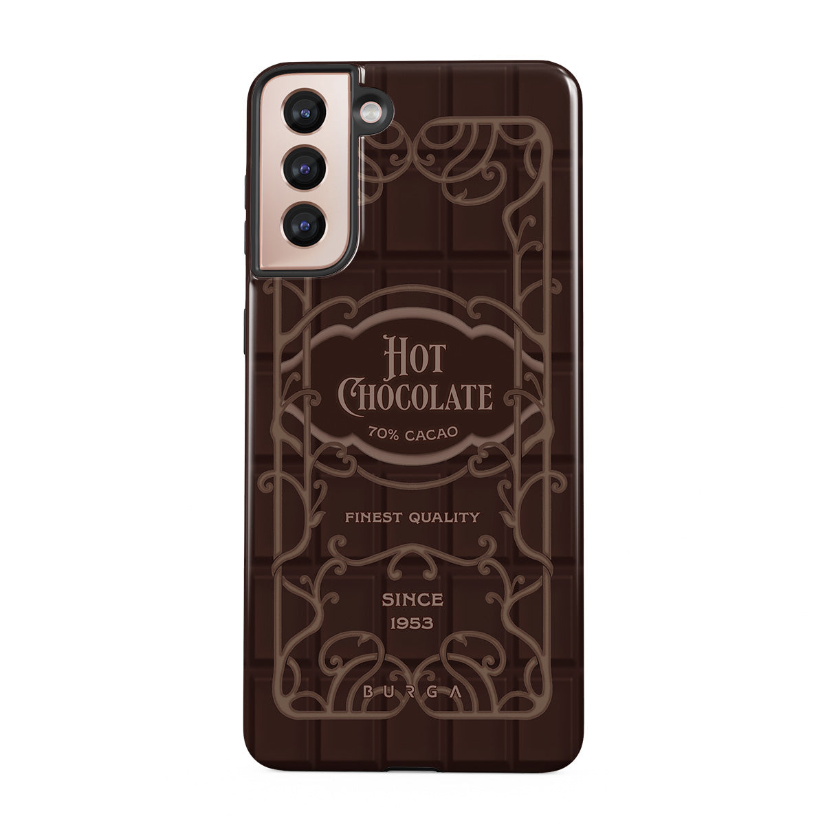 Este design contém: etiqueta de chocolate quente, design de chocolate marrom, estilo retro de embalagem