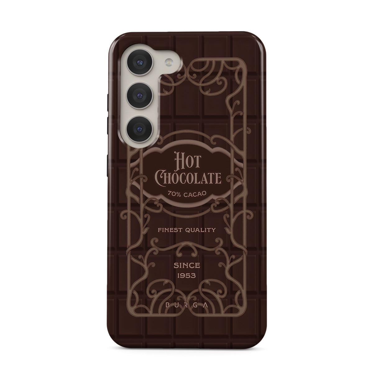 Este design contém: etiqueta de chocolate quente, design de chocolate marrom, estilo retro de embalagem