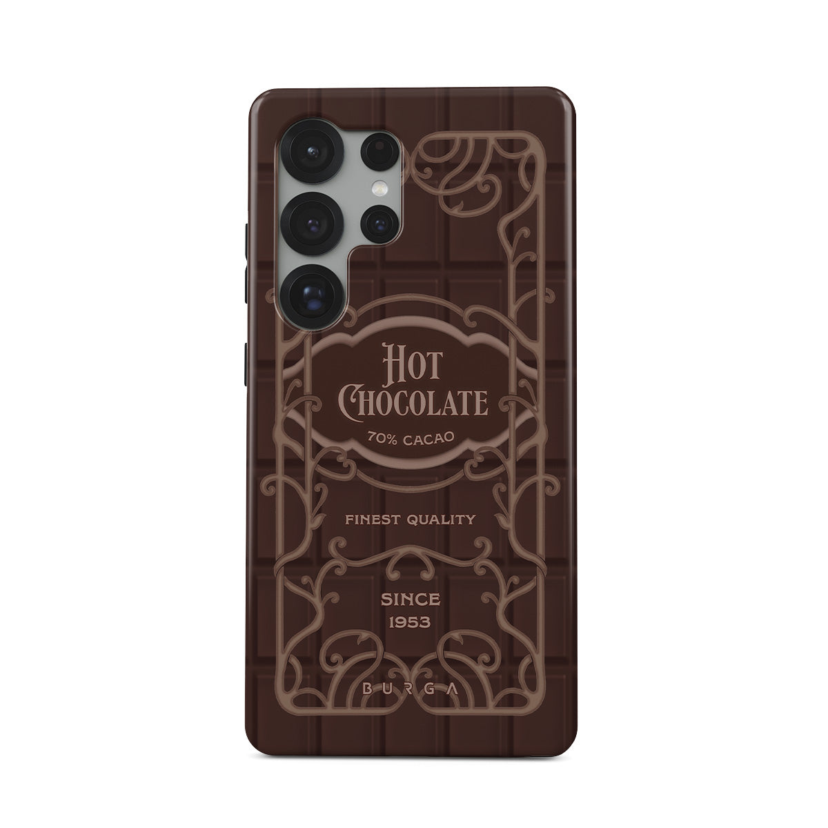 Este design contém: etiqueta de chocolate quente, design de chocolate marrom, estilo retro de embalagem