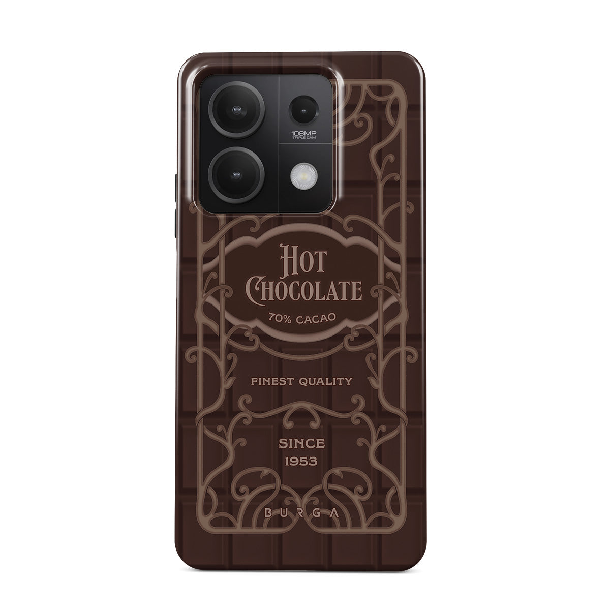 Este design contém: etiqueta de chocolate quente, design de chocolate marrom, estilo retro de embalagem