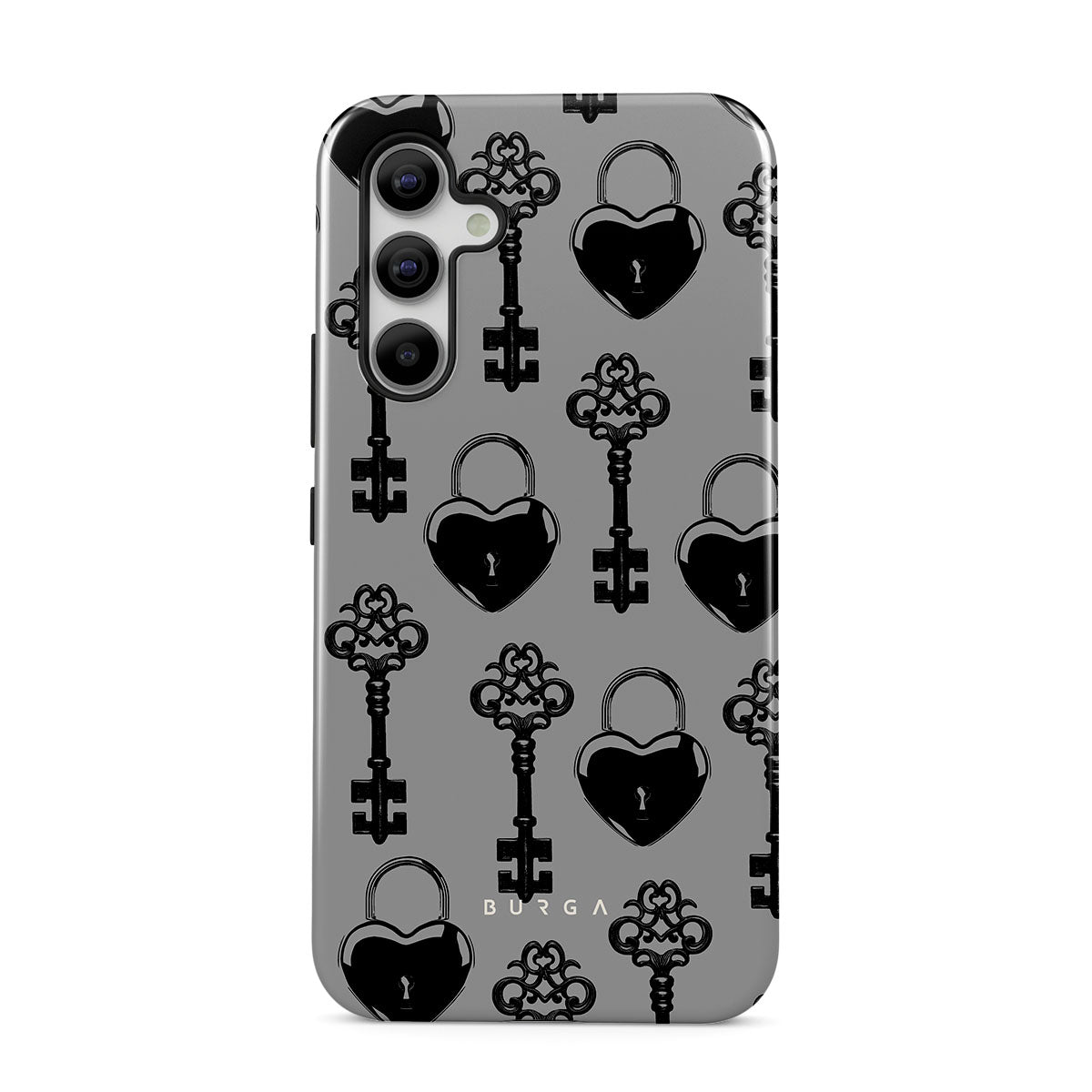 Este design contém: fechaduras ornamentadas, chaves vintage, pormenores em preto.