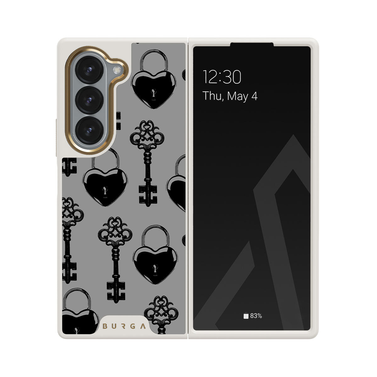Este design contém: fechaduras ornamentadas, chaves vintage, pormenores em preto.