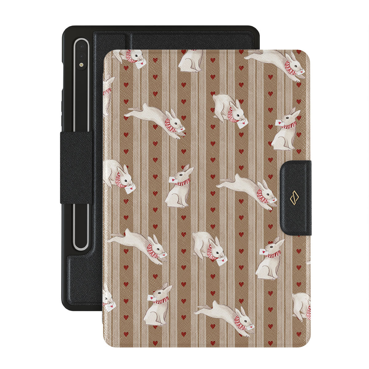 Este design contém: coelhos brancos, corações, amor, cartas, riscas vintage