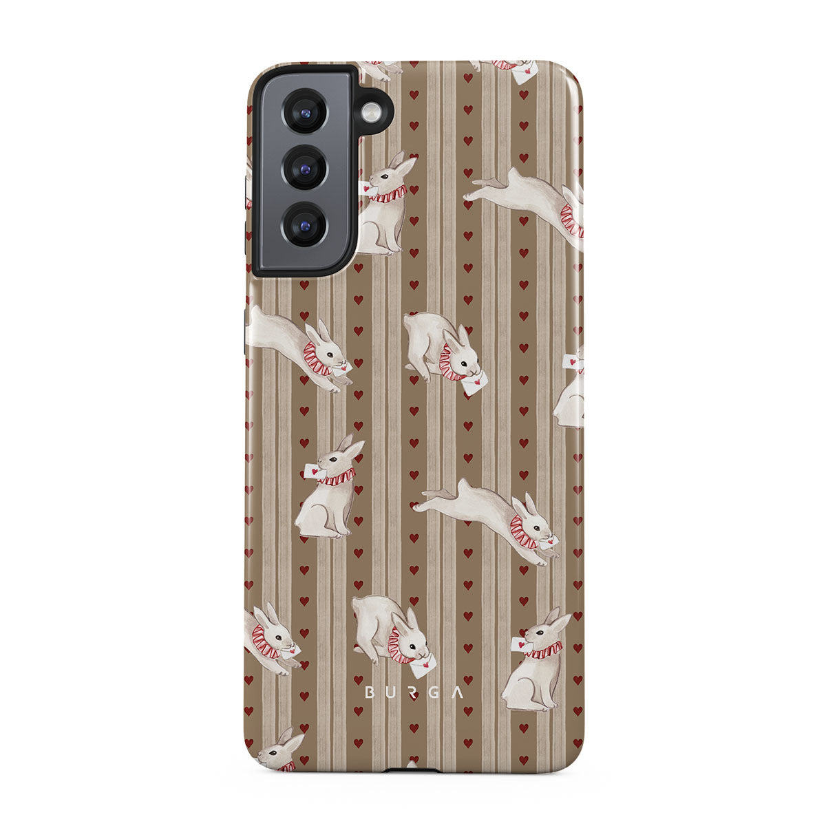 Este design contém: coelhos brancos, corações, amor, cartas, riscas vintage