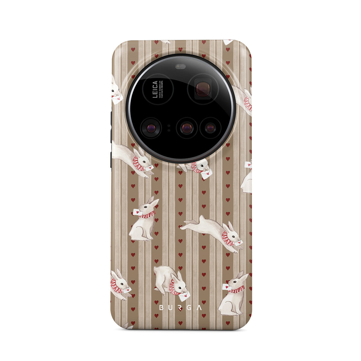 Este design contém: coelhos brancos, corações, amor, cartas, riscas vintage