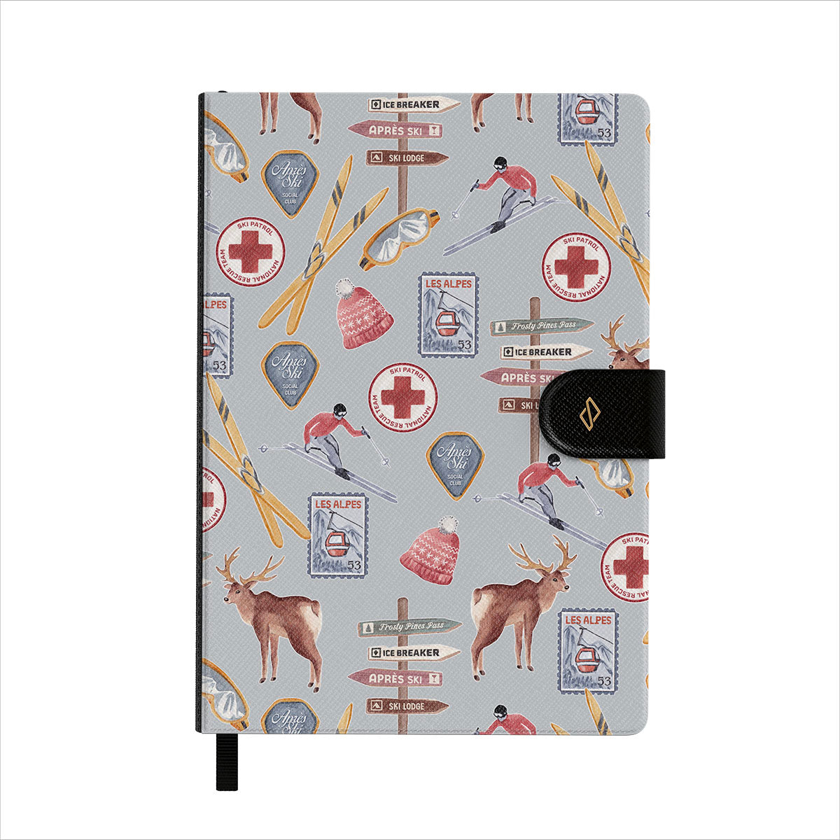 - Capa dura frontal em pele sintética vegana com designs únicos e elegantes;