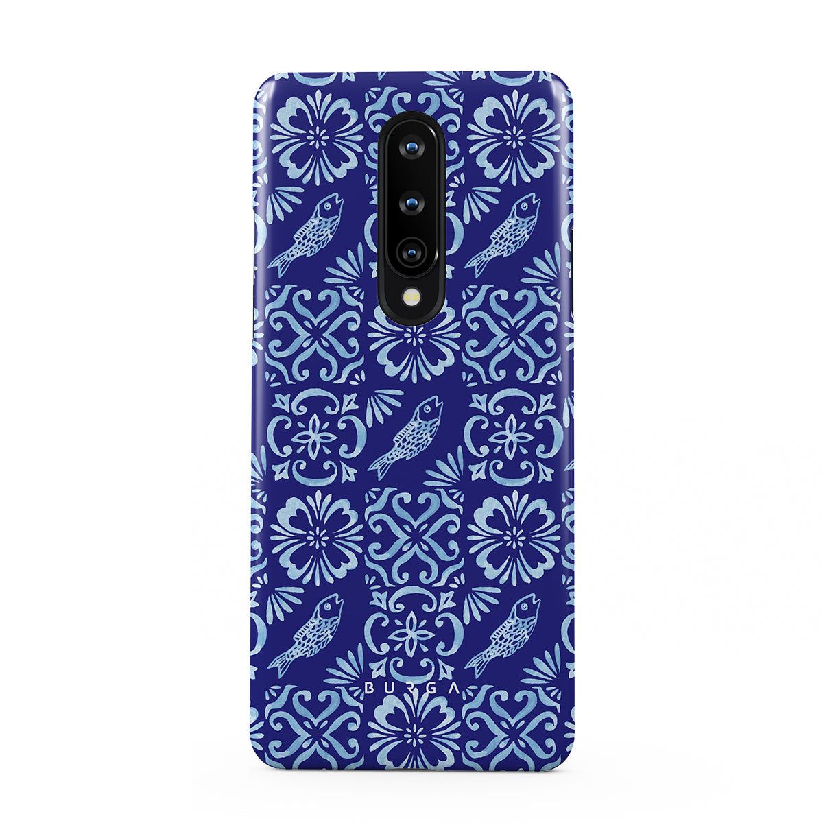 Este design contém: padrões de azulejos portugueses, azuis profundos, padrões florais, flores, peixes