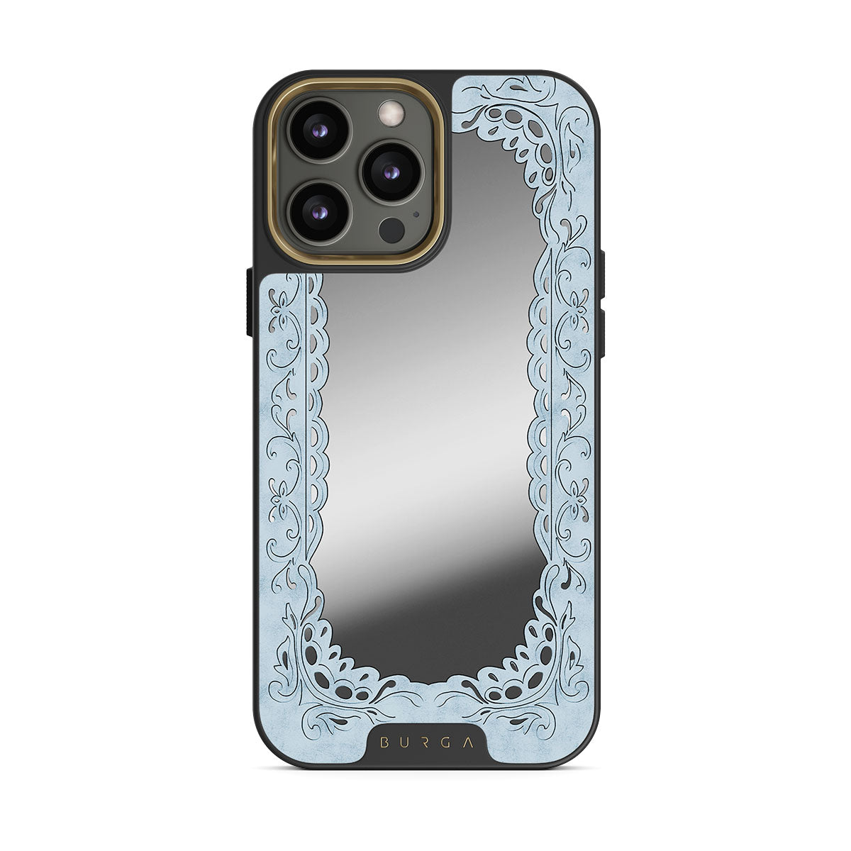 Este design contém: moldura azul, moldura vintage, efeito espelho