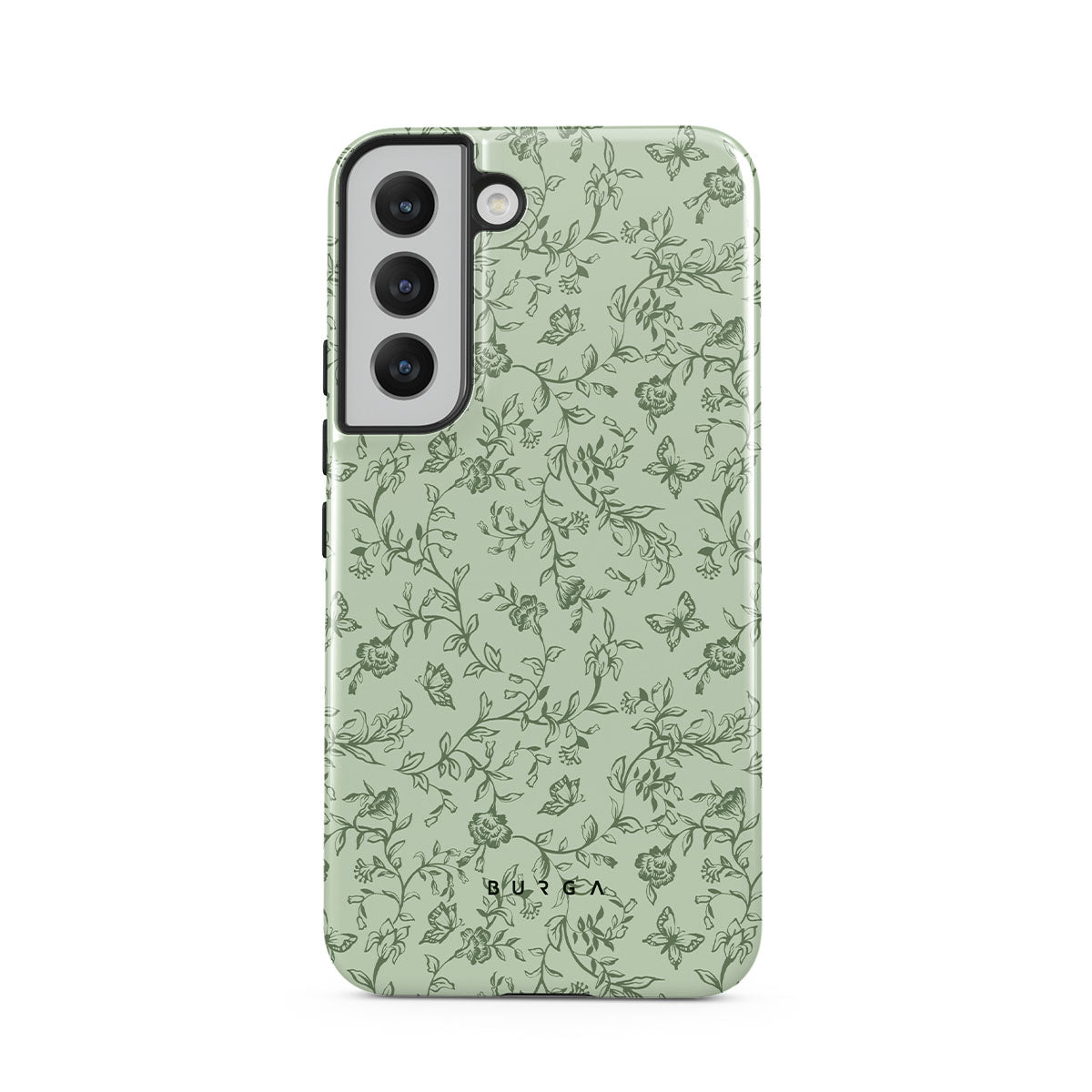 Este design contém: padrão floral verde, flores, borboletas