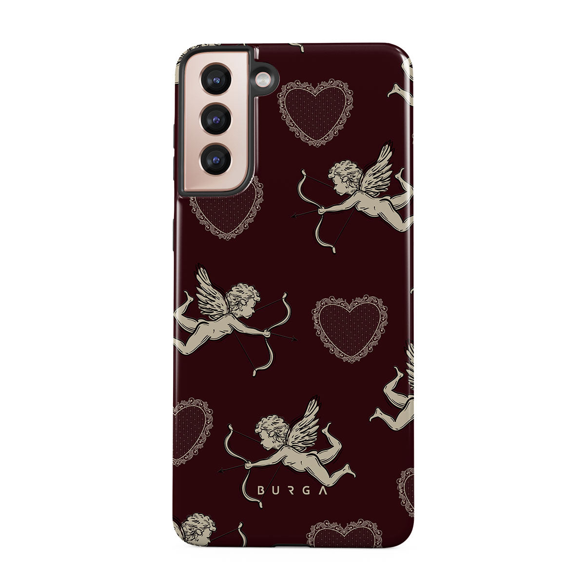 Este design contém: anjos, Cupido, corações vermelhos, padrão romântico.