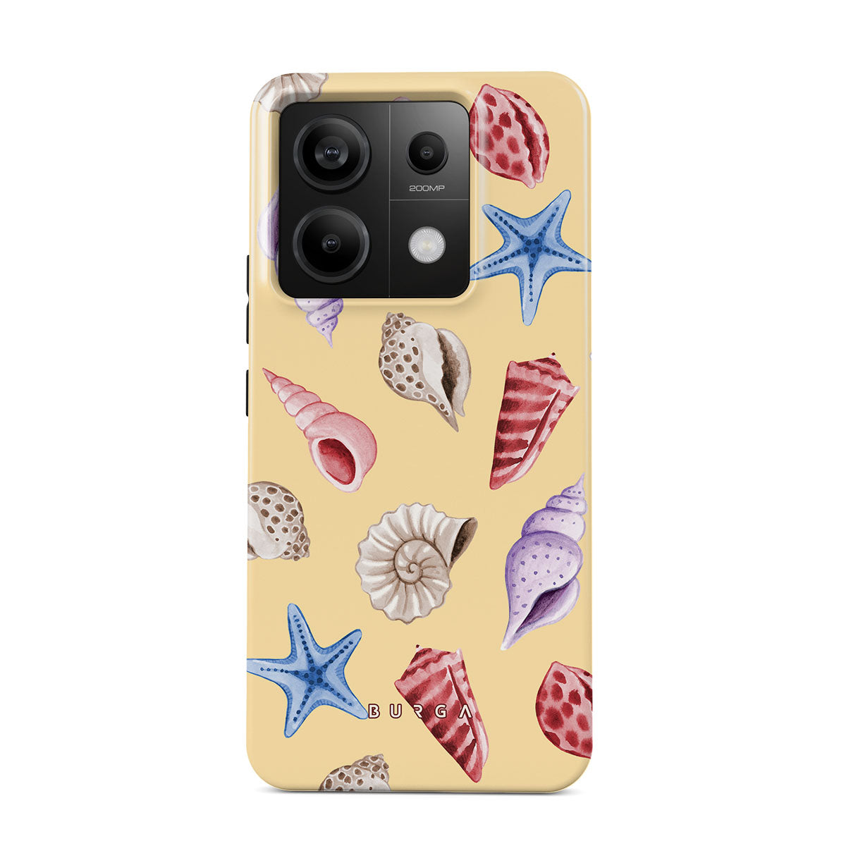 Este design contém: conchas, estrelas do mar, fundo amarelo pastel, tema oceânico.