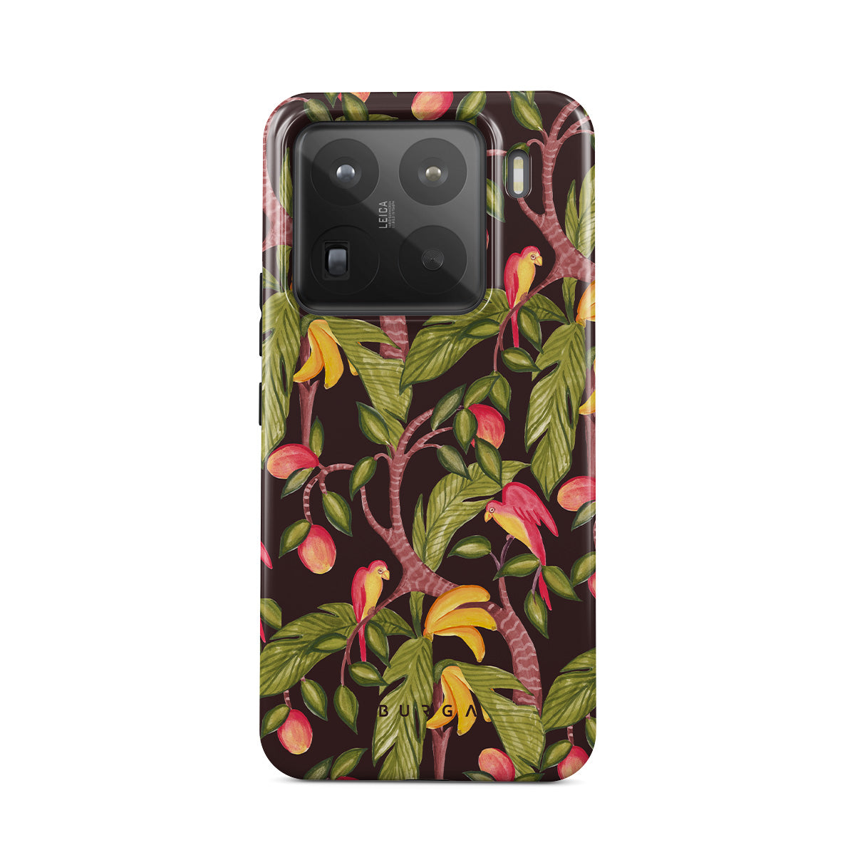 Este design contém: mangas, folhas verde escuras, padrão inspirado na selva