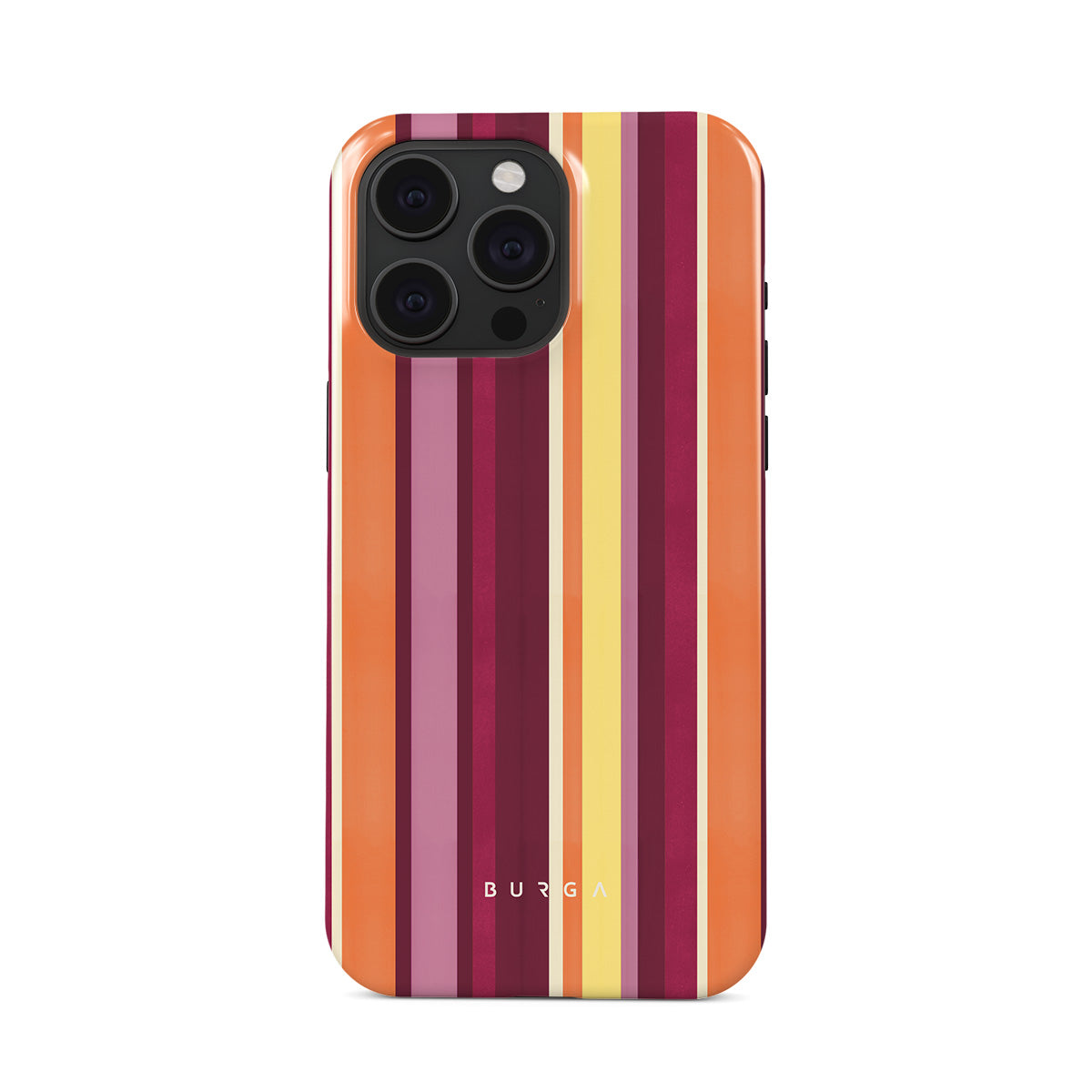 Este design contém: listras laranja e roxas, cores de maracujá, padrão tropical