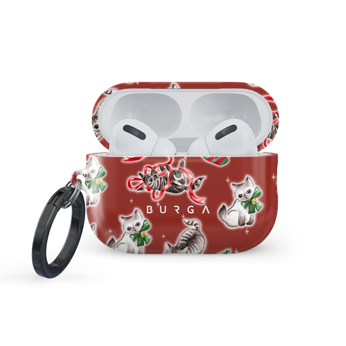 Este design contém: gatos, meias de Natal, gatinhos, padrão vermelho e verde, gatos brincalhões, decorações de Natal