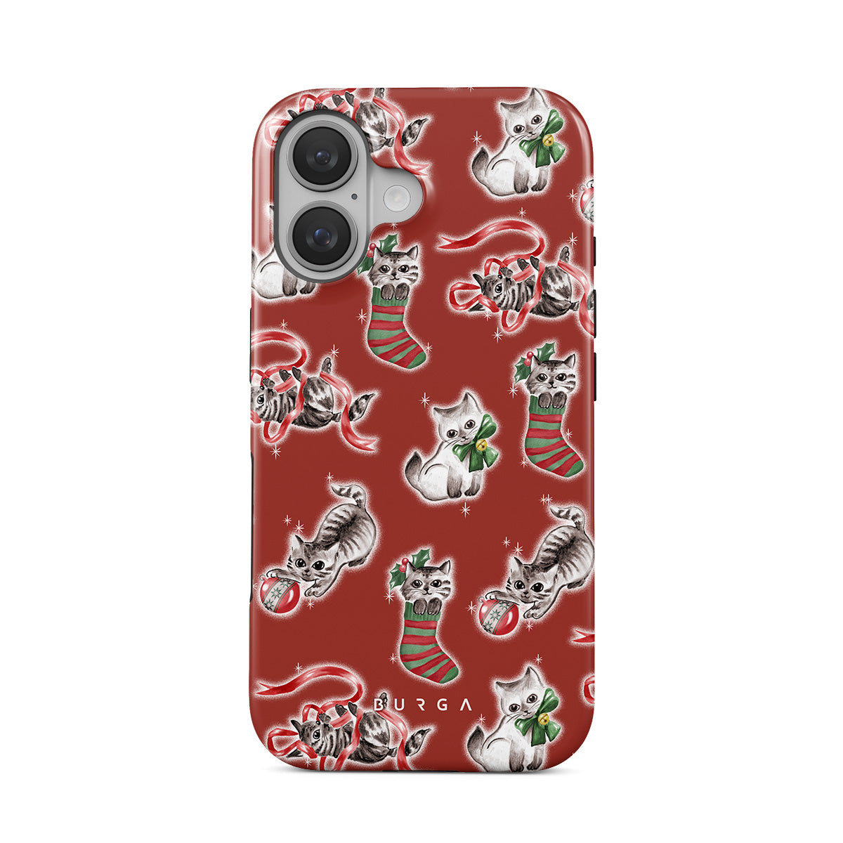 Este design contém: gatos, meias de Natal, gatinhos, padrão vermelho e verde, gatos brincalhões, decorações de Natal