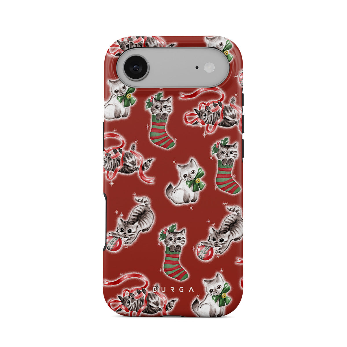 Este design contém: gatos, meias de Natal, gatinhos, padrão vermelho e verde, gatos brincalhões, decorações de Natal