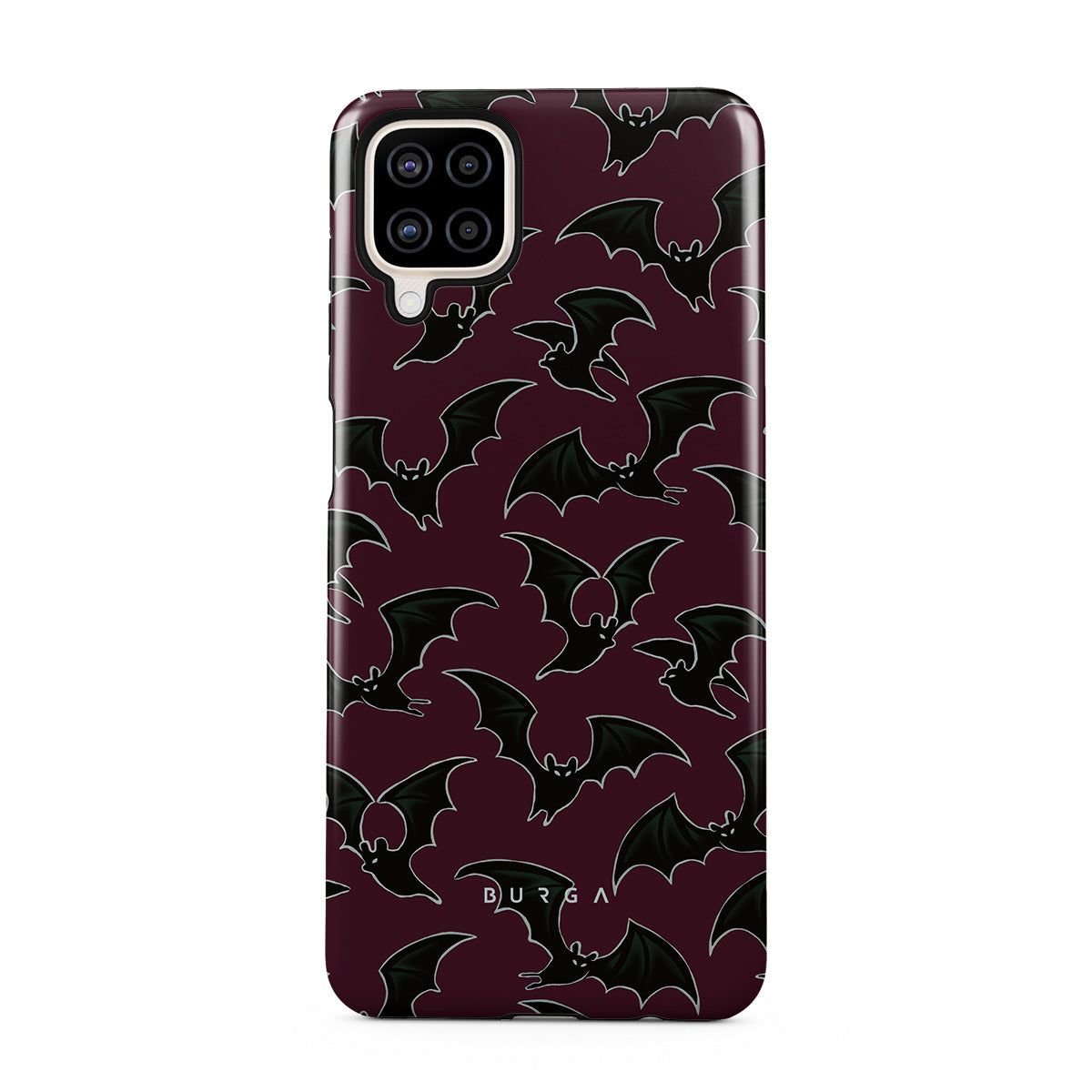 Este design contém: tema de Halloween, morcegos, fundo bordô