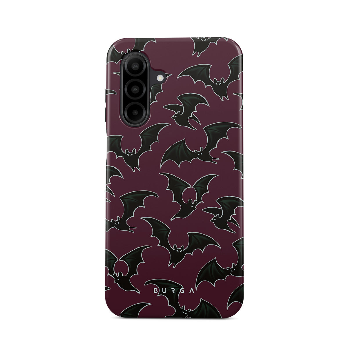 Este design contém: tema de Halloween, morcegos, fundo bordô