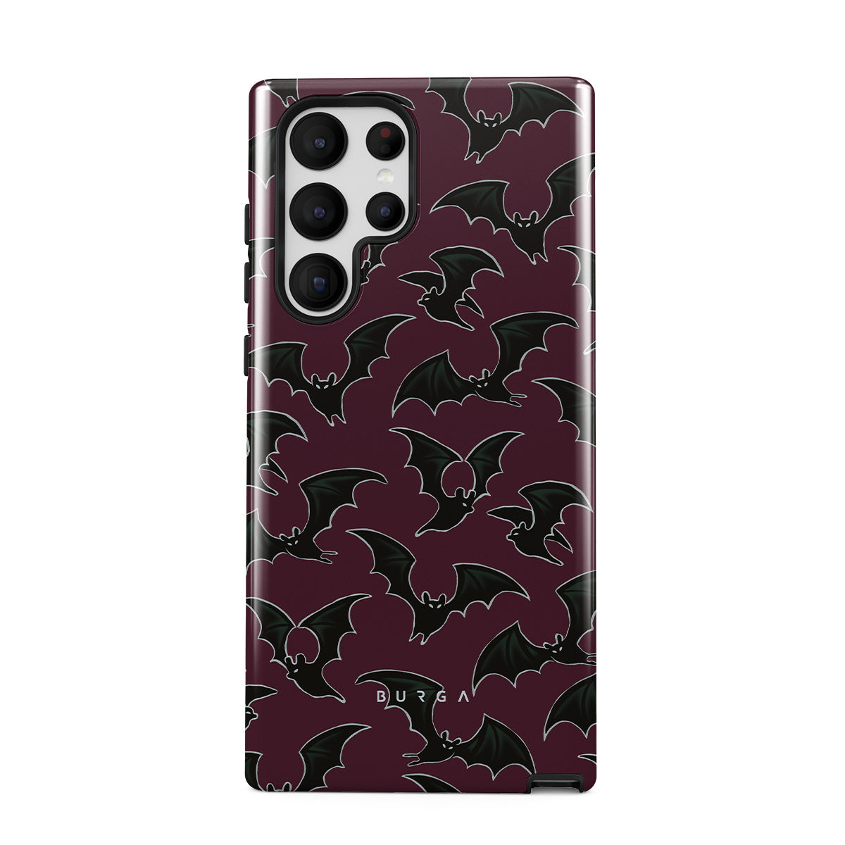 Este design contém: tema de Halloween, morcegos, fundo bordô