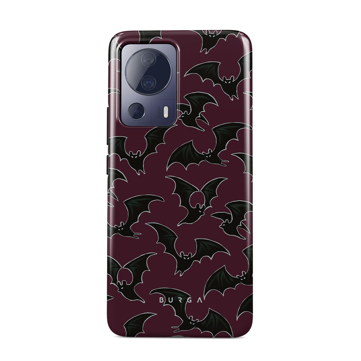 Este design contém: tema de Halloween, morcegos, fundo bordô