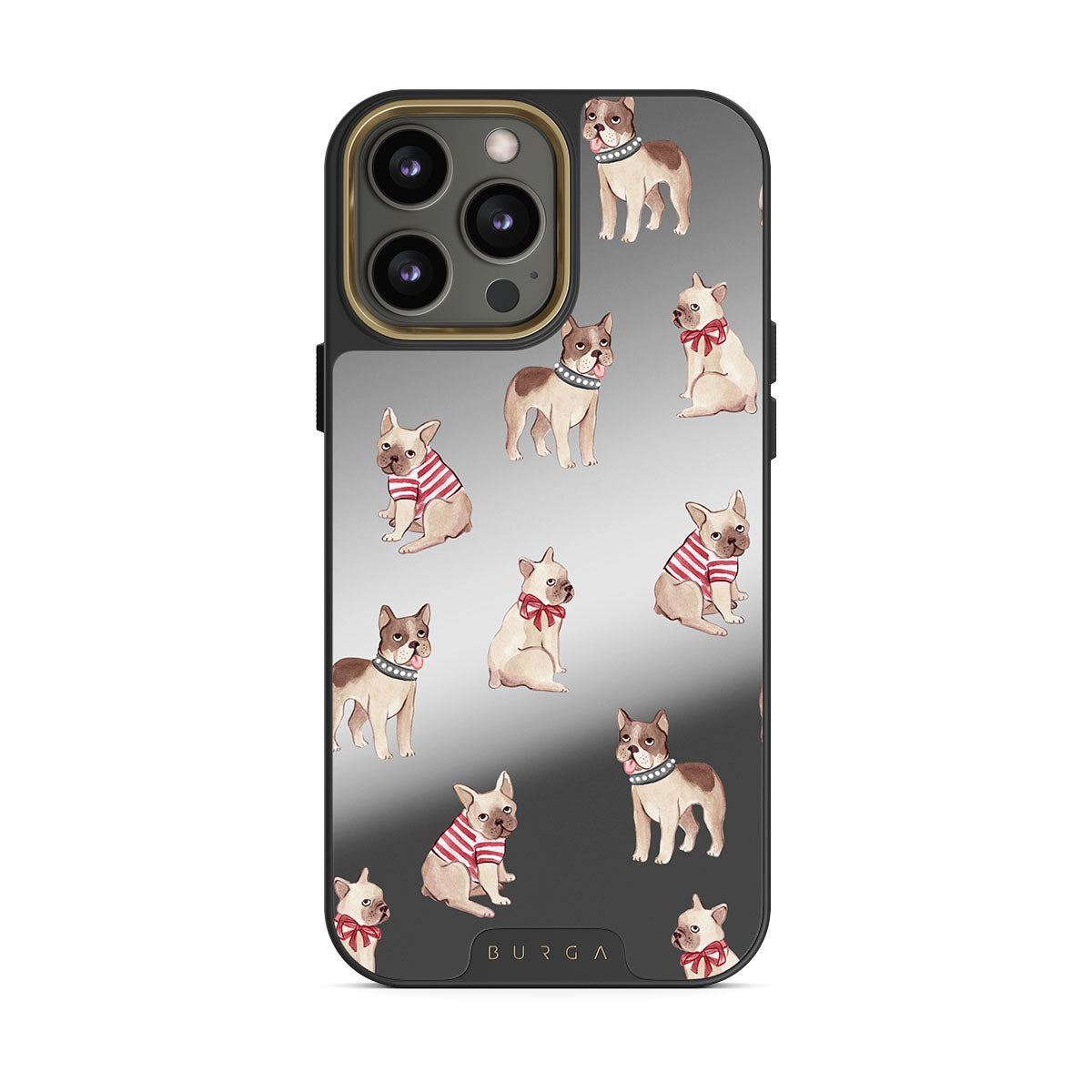 Este design contém: bulldogs franceses, cães, mascotes fofas, espelho