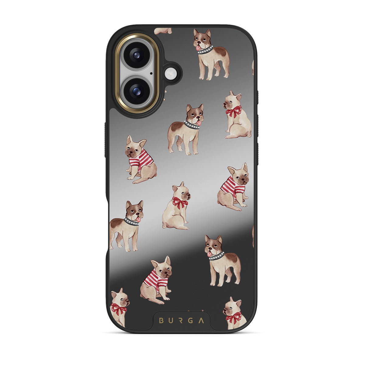 Este design contém: bulldogs franceses, cães, mascotes fofas, espelho
