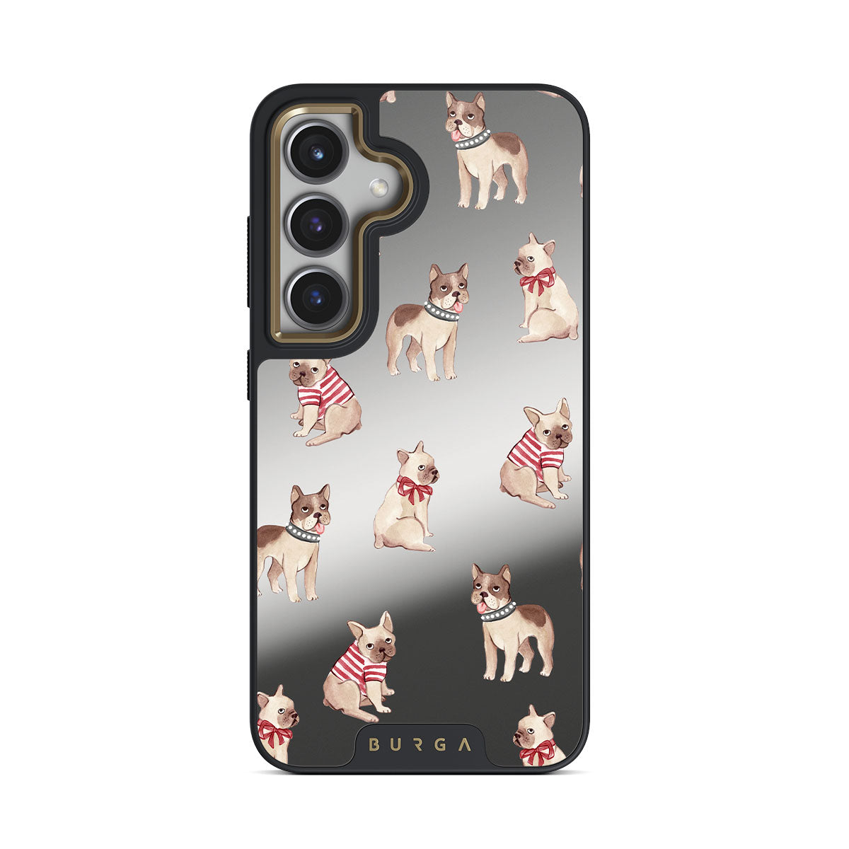 Este design contém: bulldogs franceses, cães, mascotes fofas, espelho