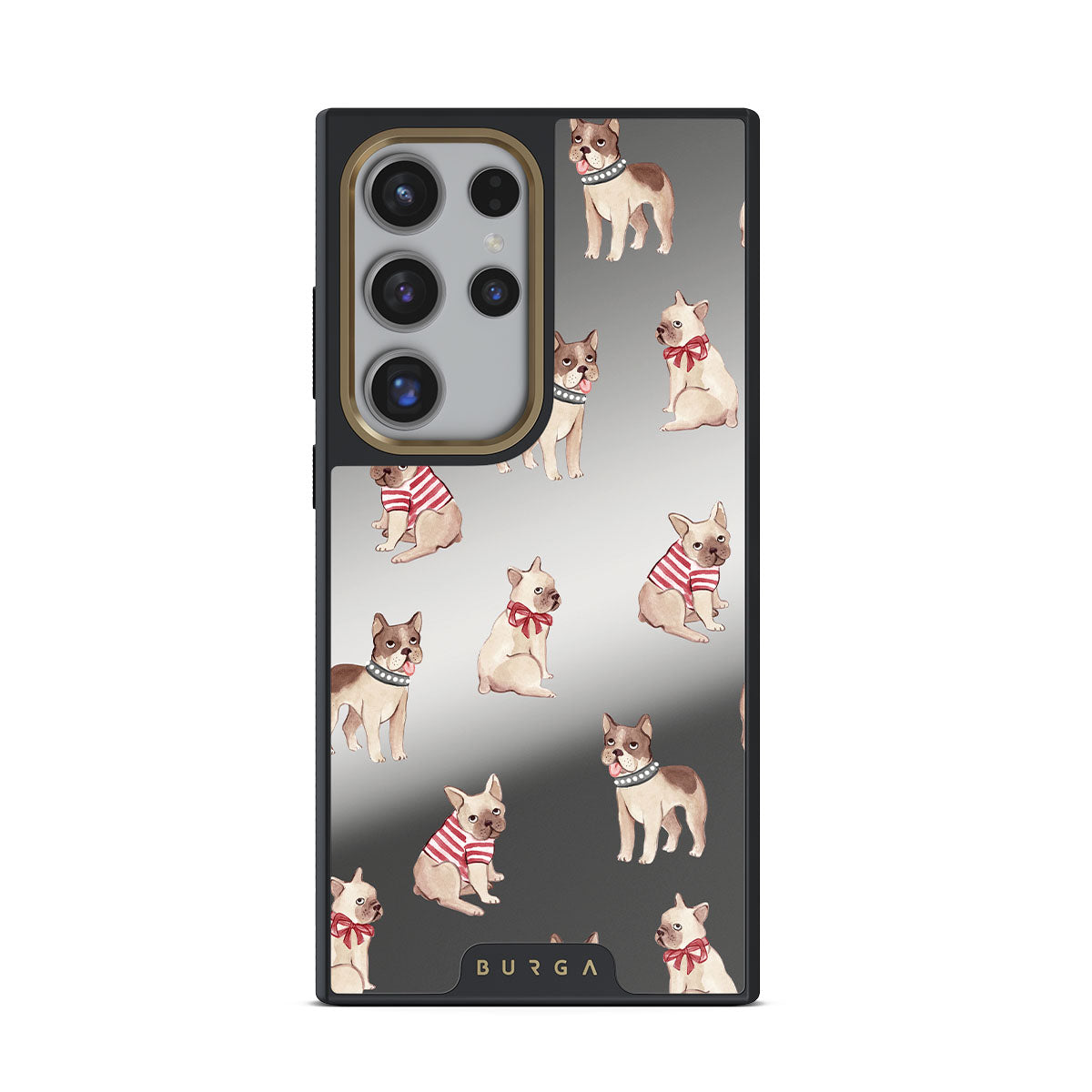 Este design contém: bulldogs franceses, cães, mascotes fofas, espelho