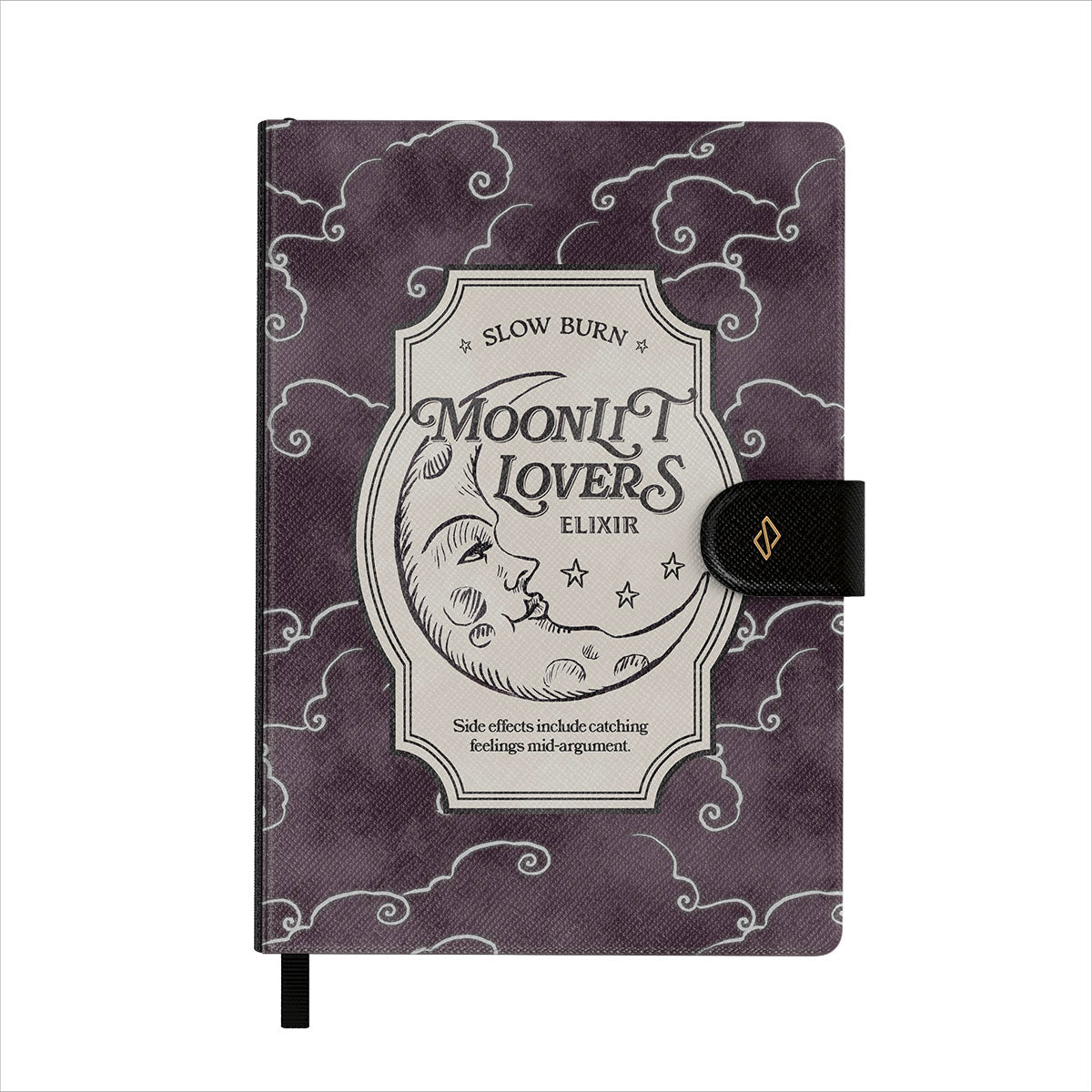 - Capa dura frontal em pele sintética vegana com designs únicos e elegantes;