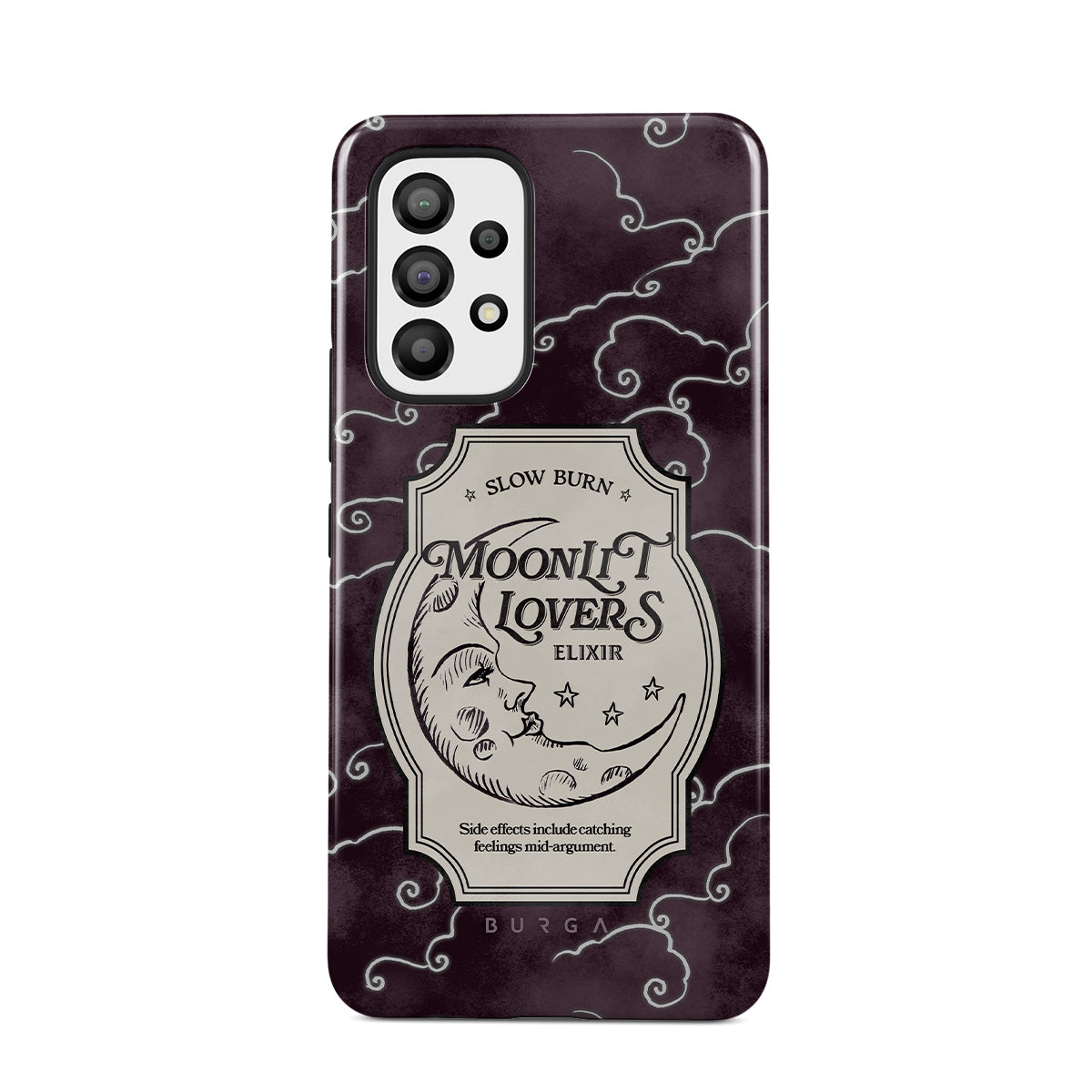 Este design contém: texto gótico, lua, estrelas, nuvens