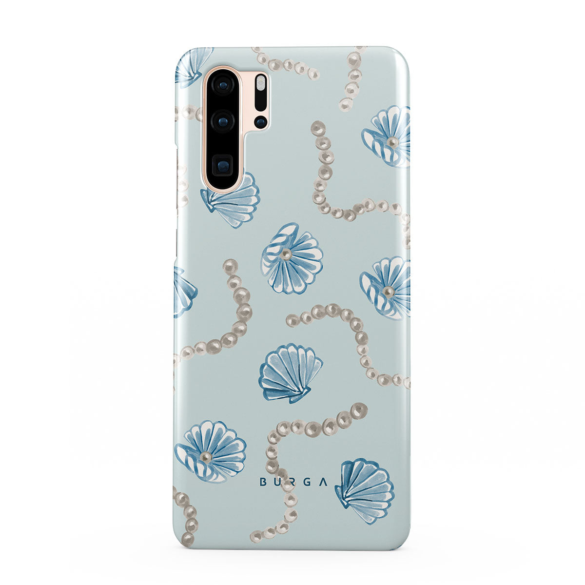 Este design contém: pérolas, conchas, fundo azul claro, elementos marinhos.