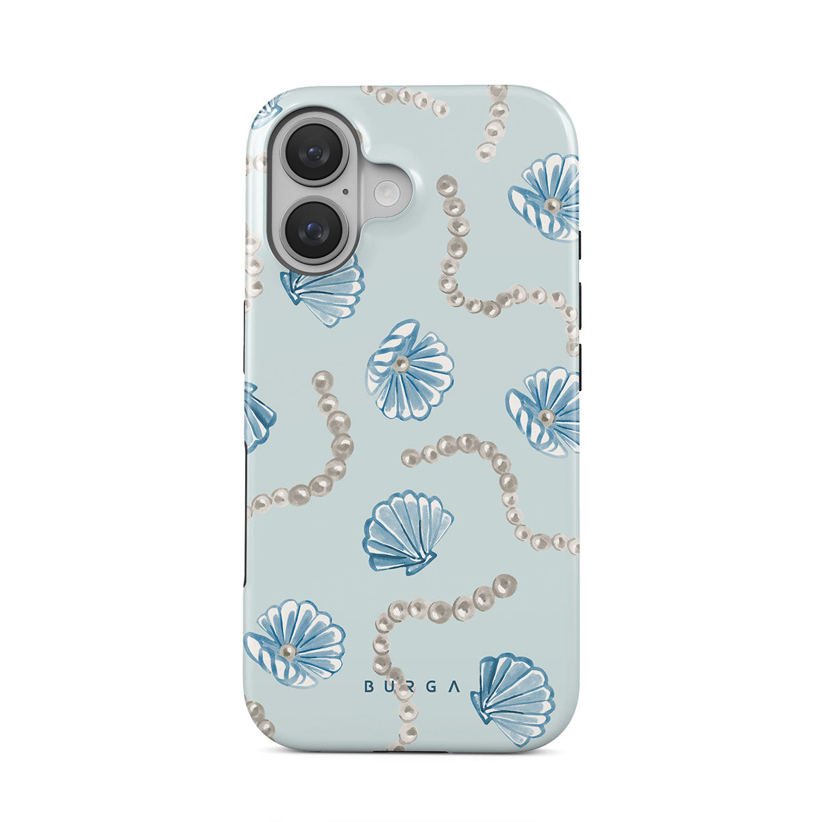 Este design contém: pérolas, conchas, fundo azul claro, elementos marinhos.