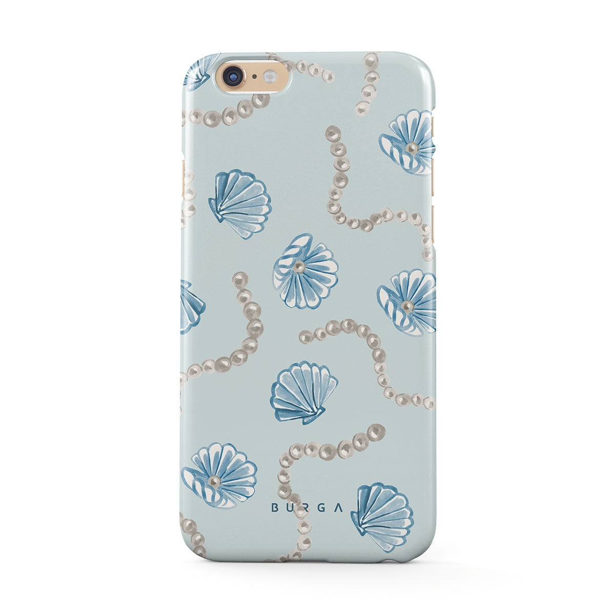 Este design contém: pérolas, conchas, fundo azul claro, elementos marinhos.