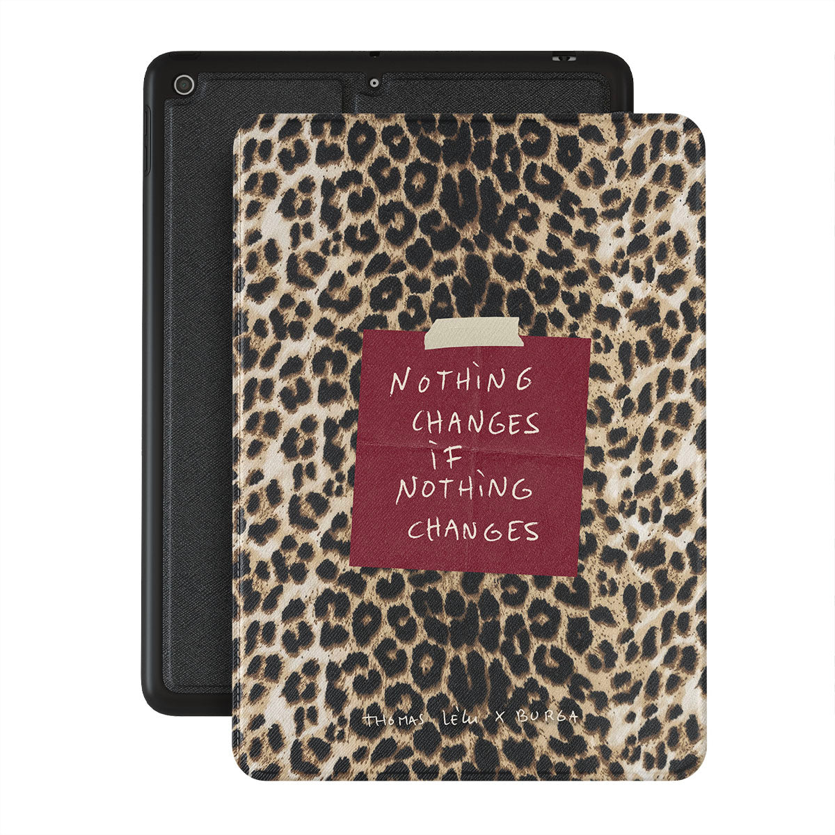 Este design contém: texto manuscrito, citação, post-it vermelho, estampa animal
