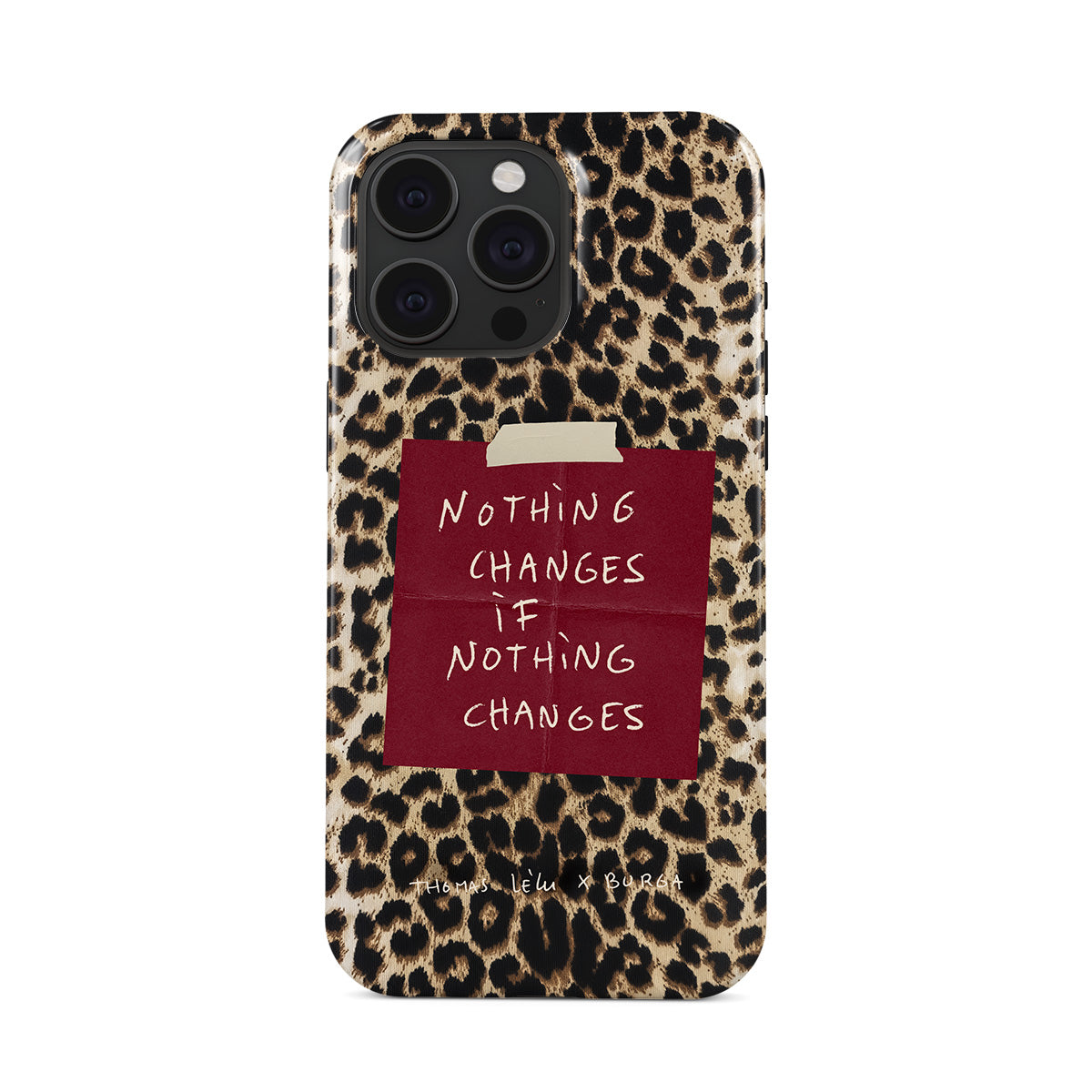 Este design contém: texto manuscrito, citação, post-it vermelho, estampa animal