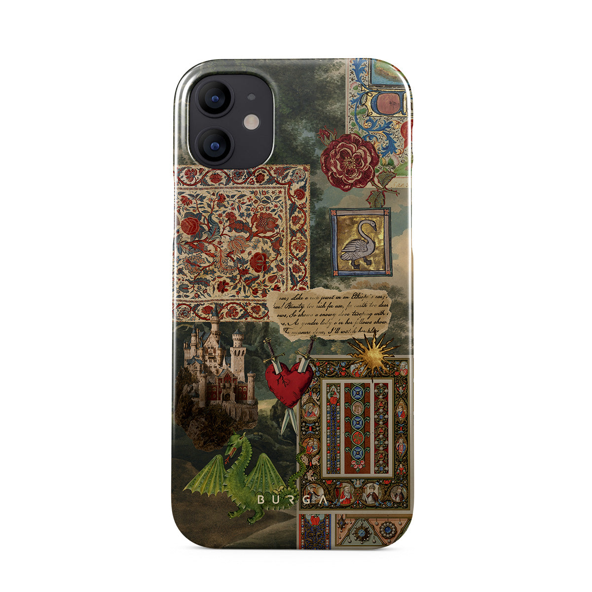 Este design contém: fonte de caligrafia manuscrita, impressão vintage, design medieval, padrão floral, ilustrações antigas, coração, dragão, castelo