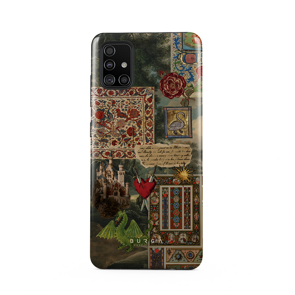 Este design contém: fonte de caligrafia manuscrita, impressão vintage, design medieval, padrão floral, ilustrações antigas, coração, dragão, castelo