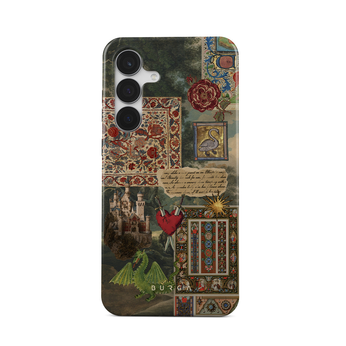 Este design contém: fonte de caligrafia manuscrita, impressão vintage, design medieval, padrão floral, ilustrações antigas, coração, dragão, castelo