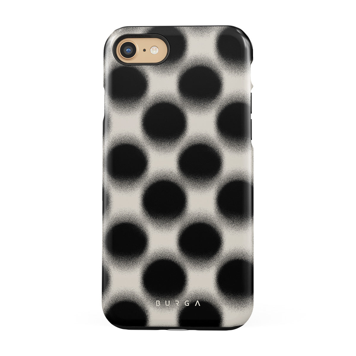 Este design contém: bolinhas pretas, padrão minimalista, padrão geométrico, desfocado